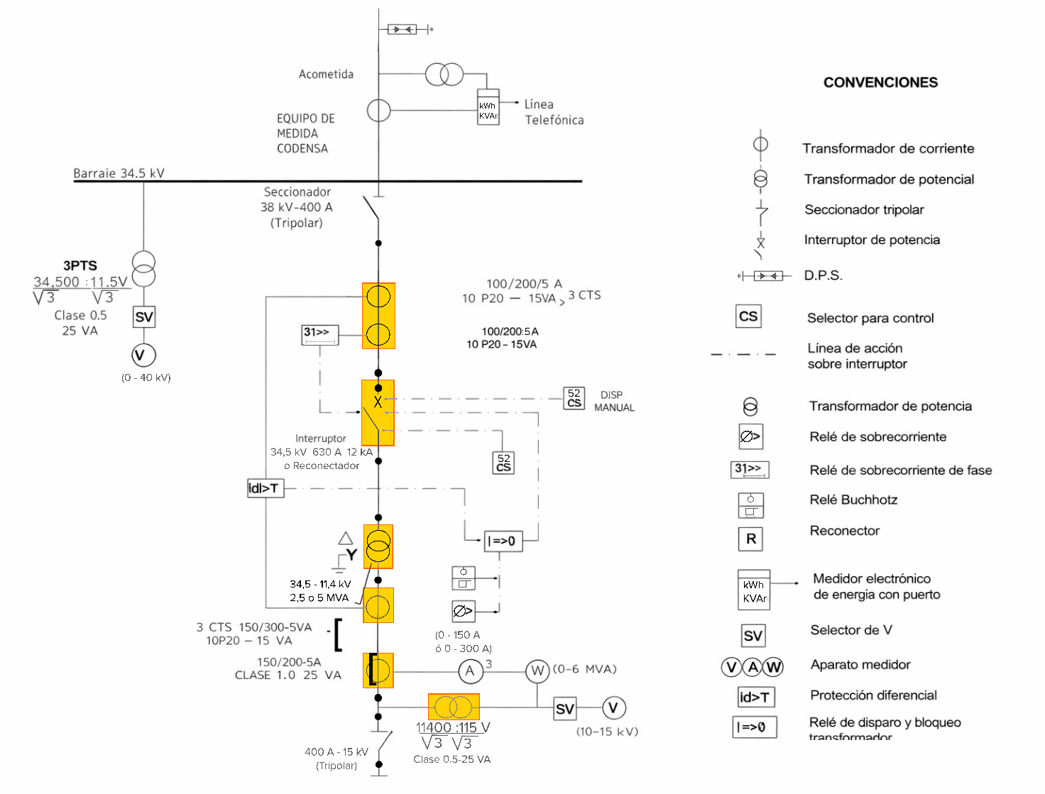 En la Figura 1 se muestra un ejemplo de bahía en la que el despacho de carga o el centro de control ha desenergizado el transformador para realizar pruebas de mantenimiento que se encuentra dentro del plan correspondiente. Se puede observar que al desenergizar el transformador también se desenergizan los transformadores de potencial asociados al lado de baja del transformador, todos los transformadores de corriente de la salida mostrada y el interruptor del lado de alta del transformador. Por tanto, al estar disponibles, si se desea también pudieran ser sometidos a pruebas eléctricas de mantenimiento.